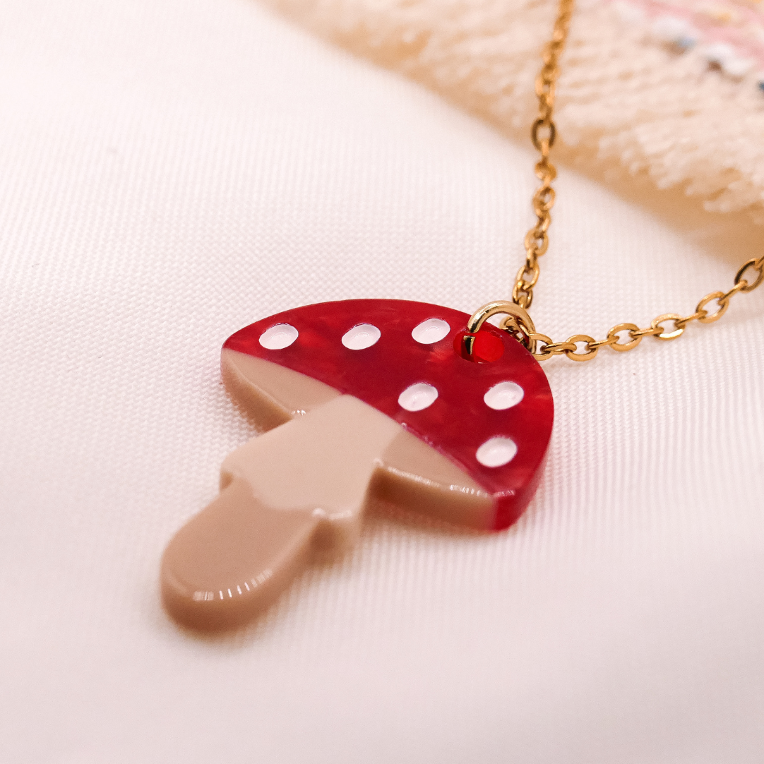 Der Pilz wurde liebevoll von mir illustriert und daraus ist diese süße Kette hier entstanden.