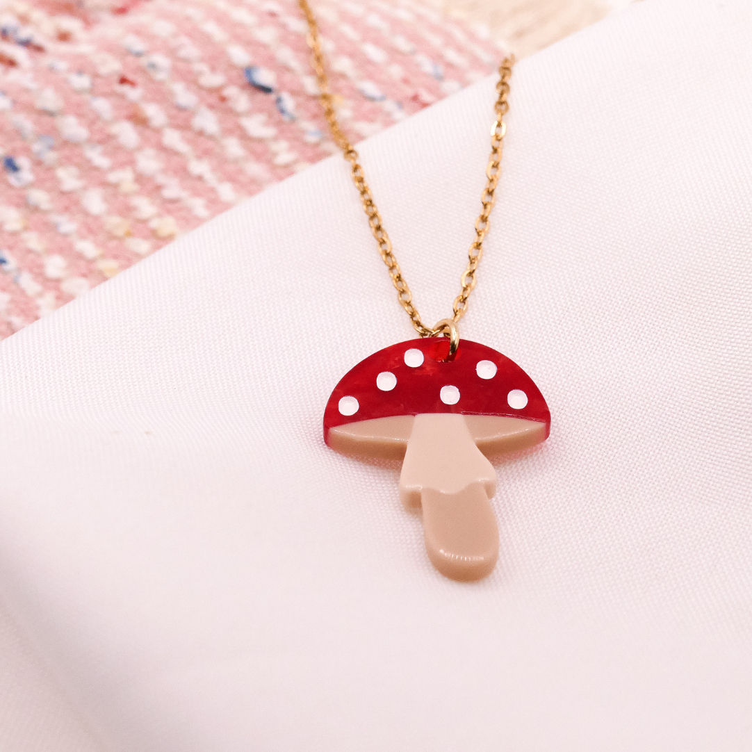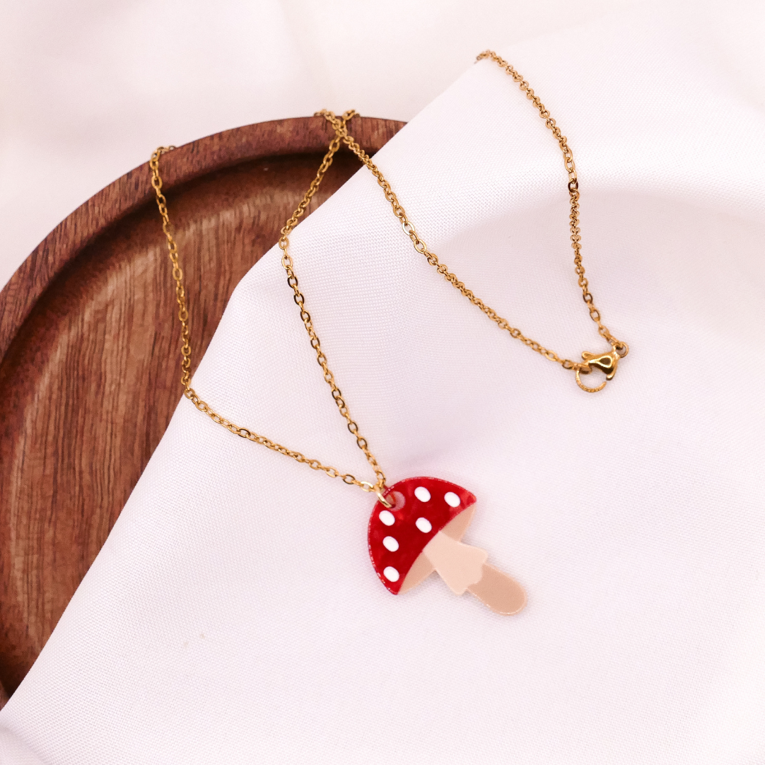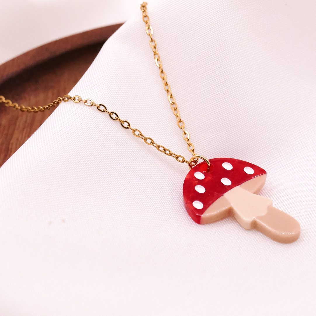 Halskette Pilz Fliegenpilz - Kette 18k vergoldet Wald Pilze Anhänger – süße Halskette Geschenk