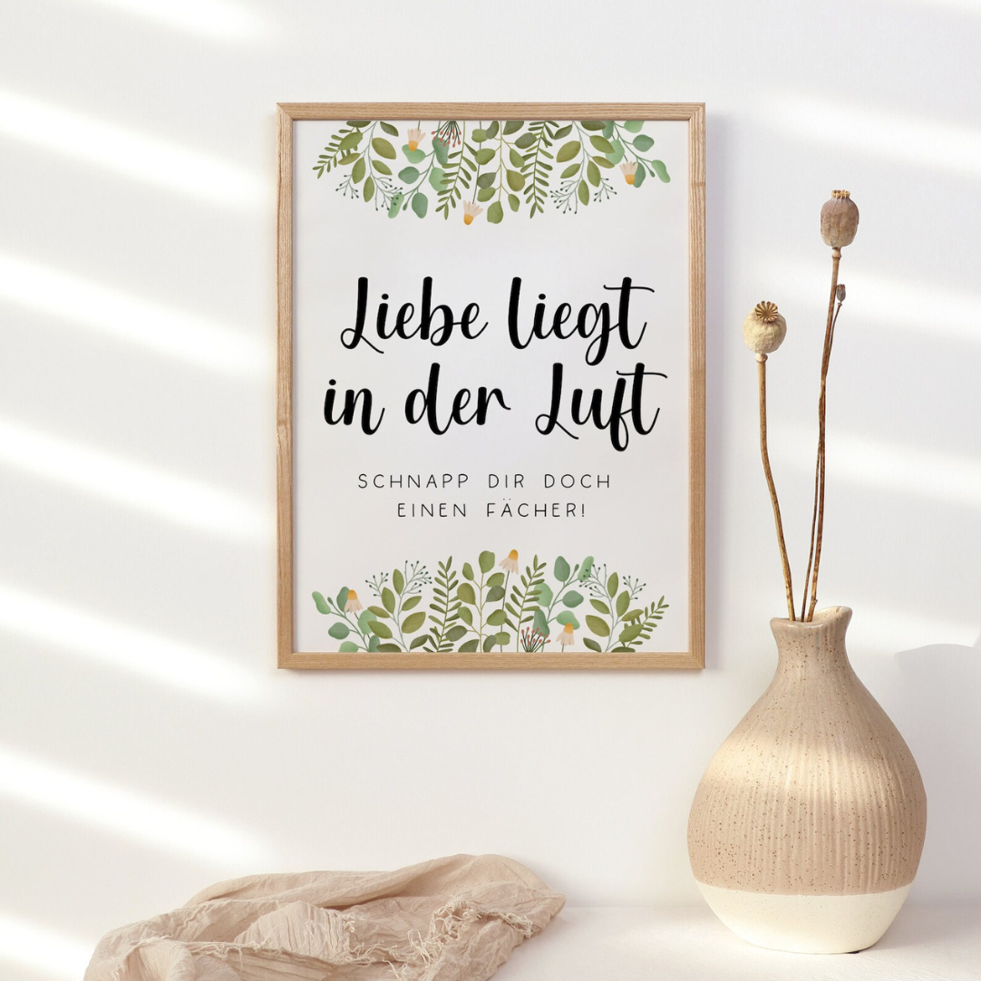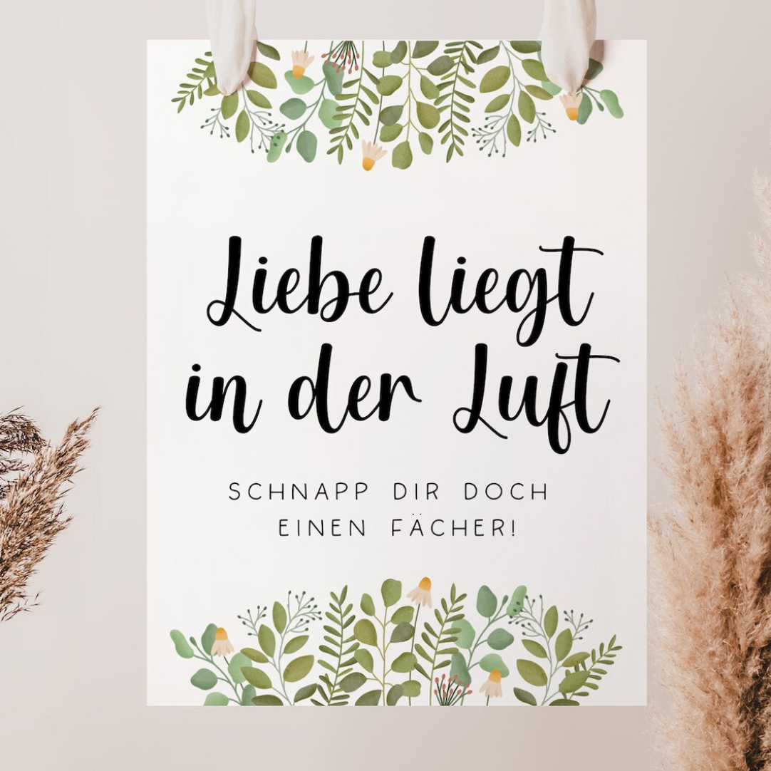Schild Hochzeit "Liebe liegt in der Luft" - Hochzeits-Fächer Deko Schild