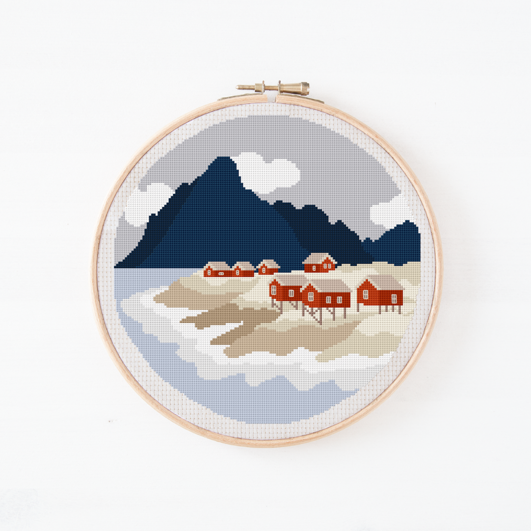 Norwegen Cross Stitch Pattern PDF - Häuser Lofoten XXL Kreuzstich-Vorlage Skandinavien DIY