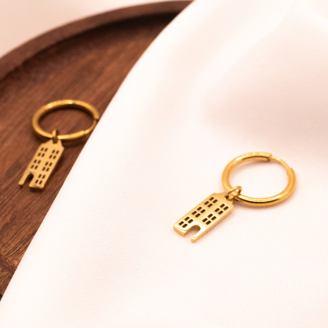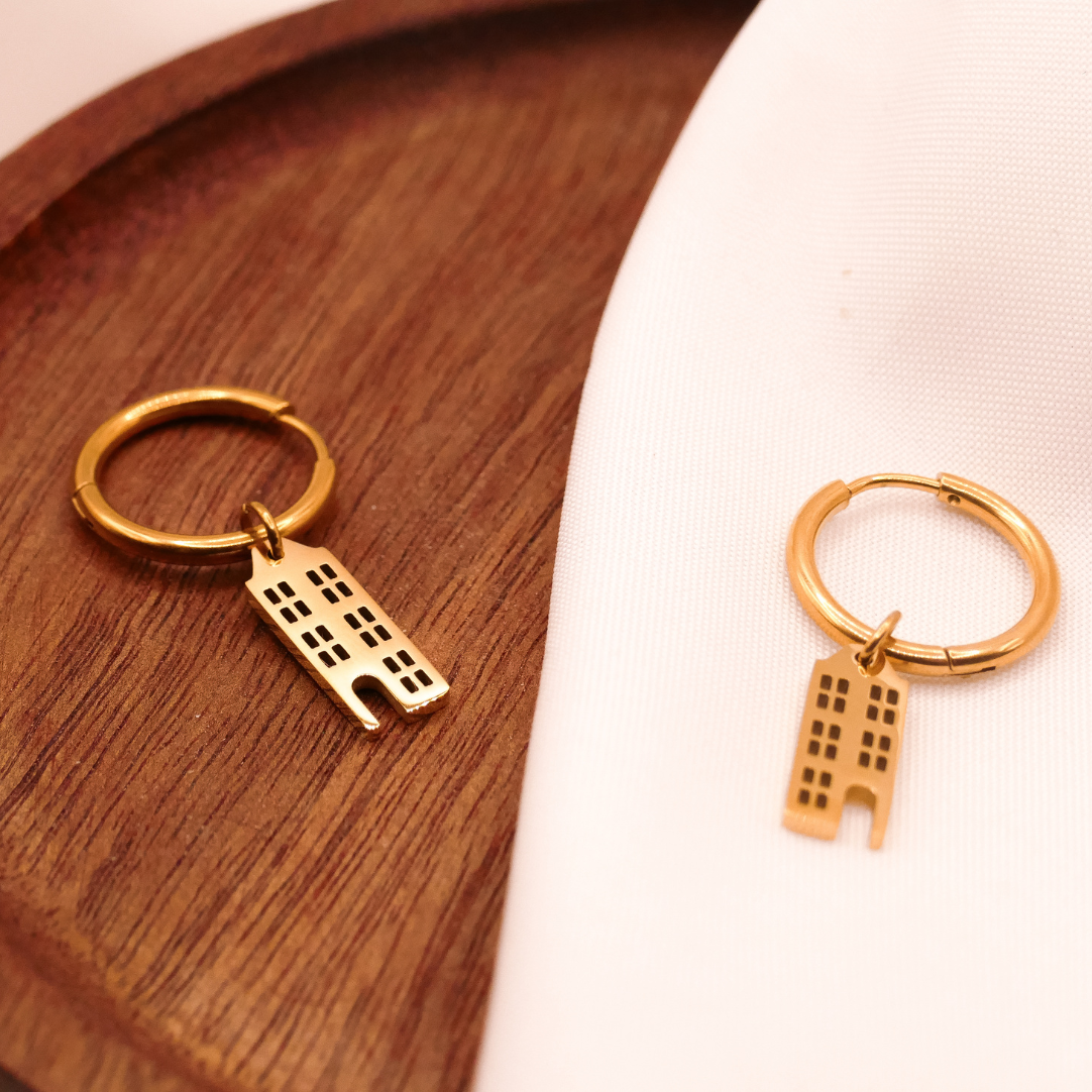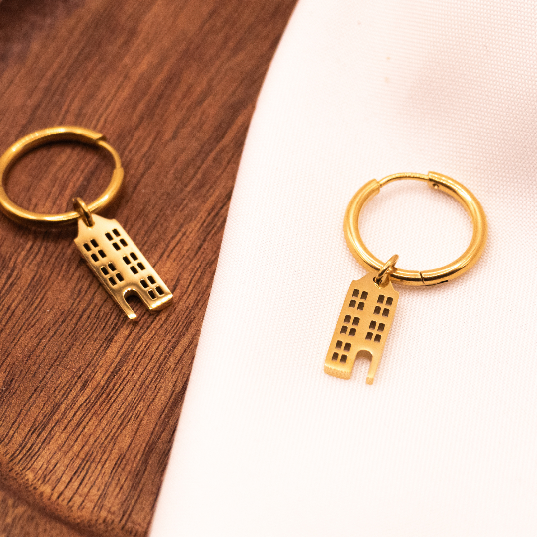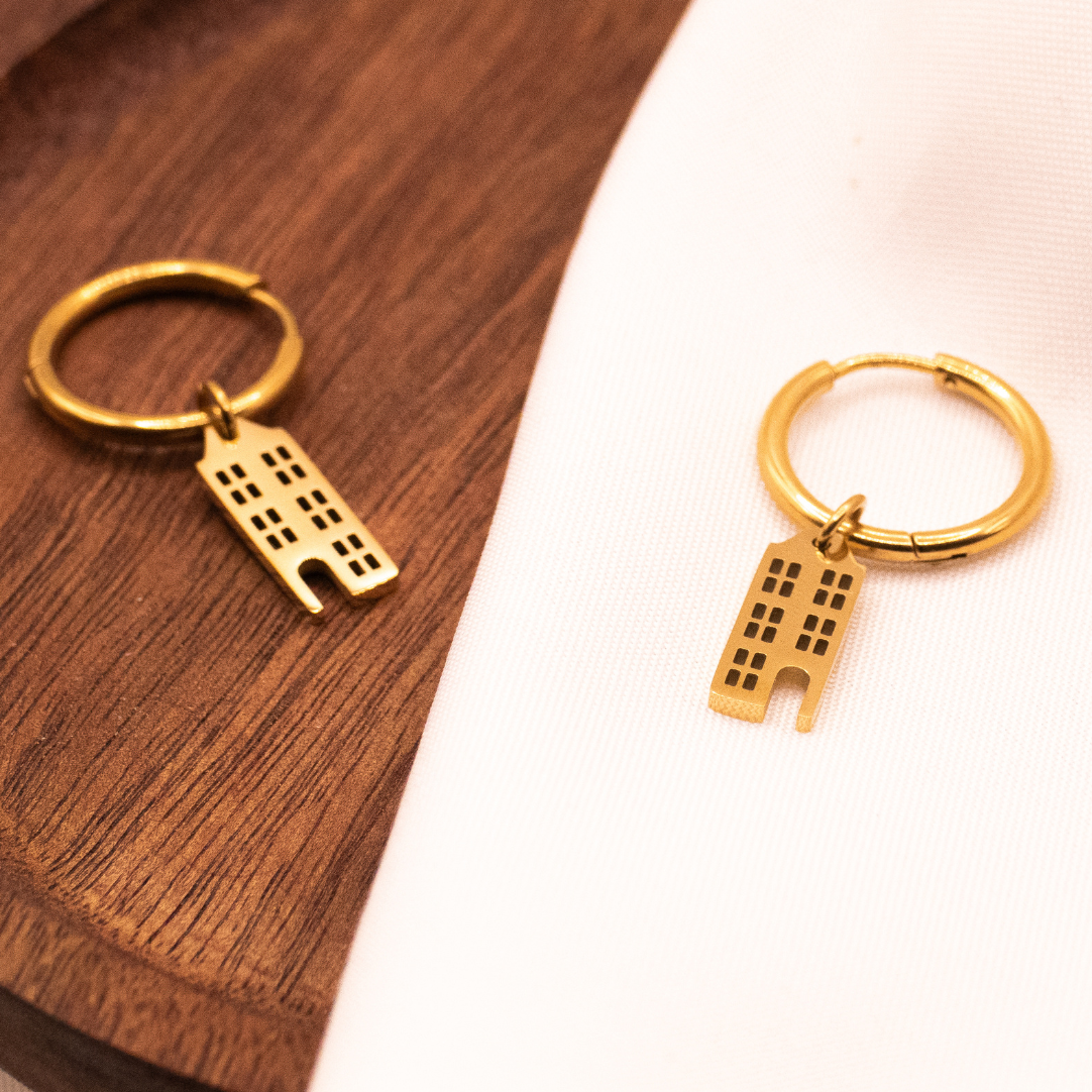 Ohrringe Grachtenhäuser Haus Creole in Gold 18k vergoldet - leichte Ohrringe Holland Amsterdam Häuser