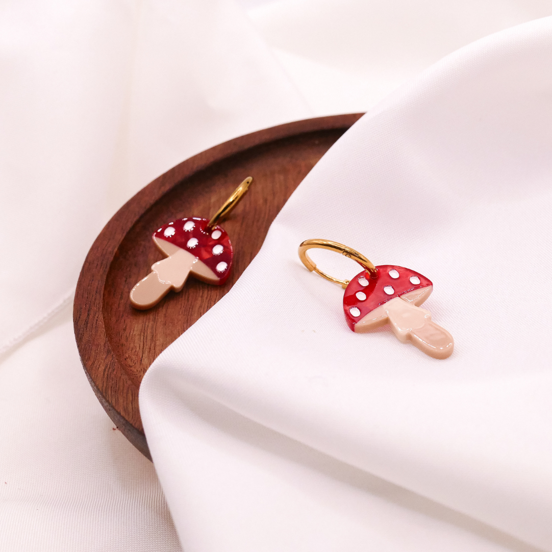 Der Pilz wurde liebevoll von mir illustriert und daraus ist diese süßen Ohrringe hier entstanden. 🍄