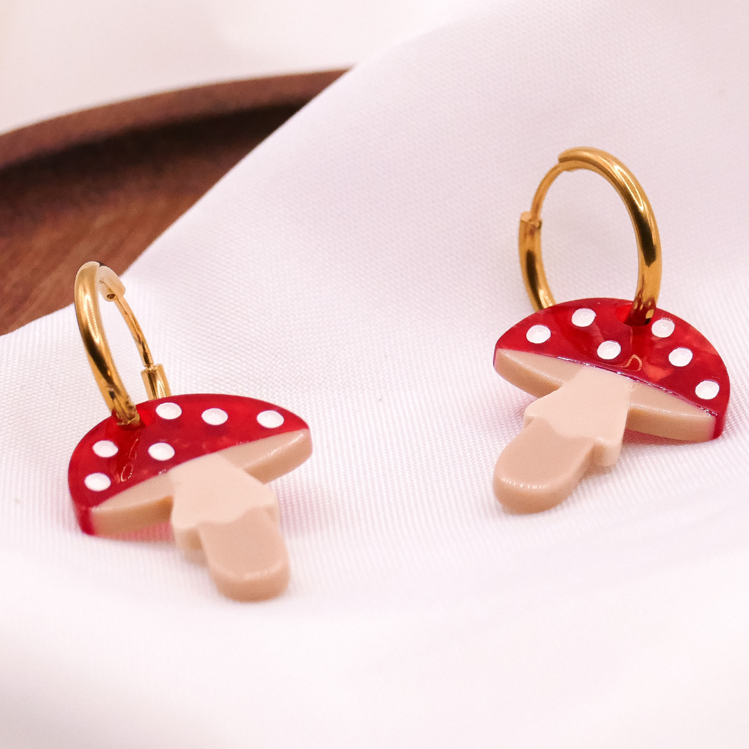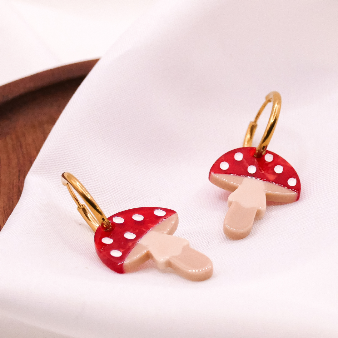 Ohrringe Pilz Fliegenpilz Creolen - 18k vergoldet Fliegenpilz Wald Pilze Anhänger - leichte Ohrringe Pilze rot - Geschenkidee Ohrringe
