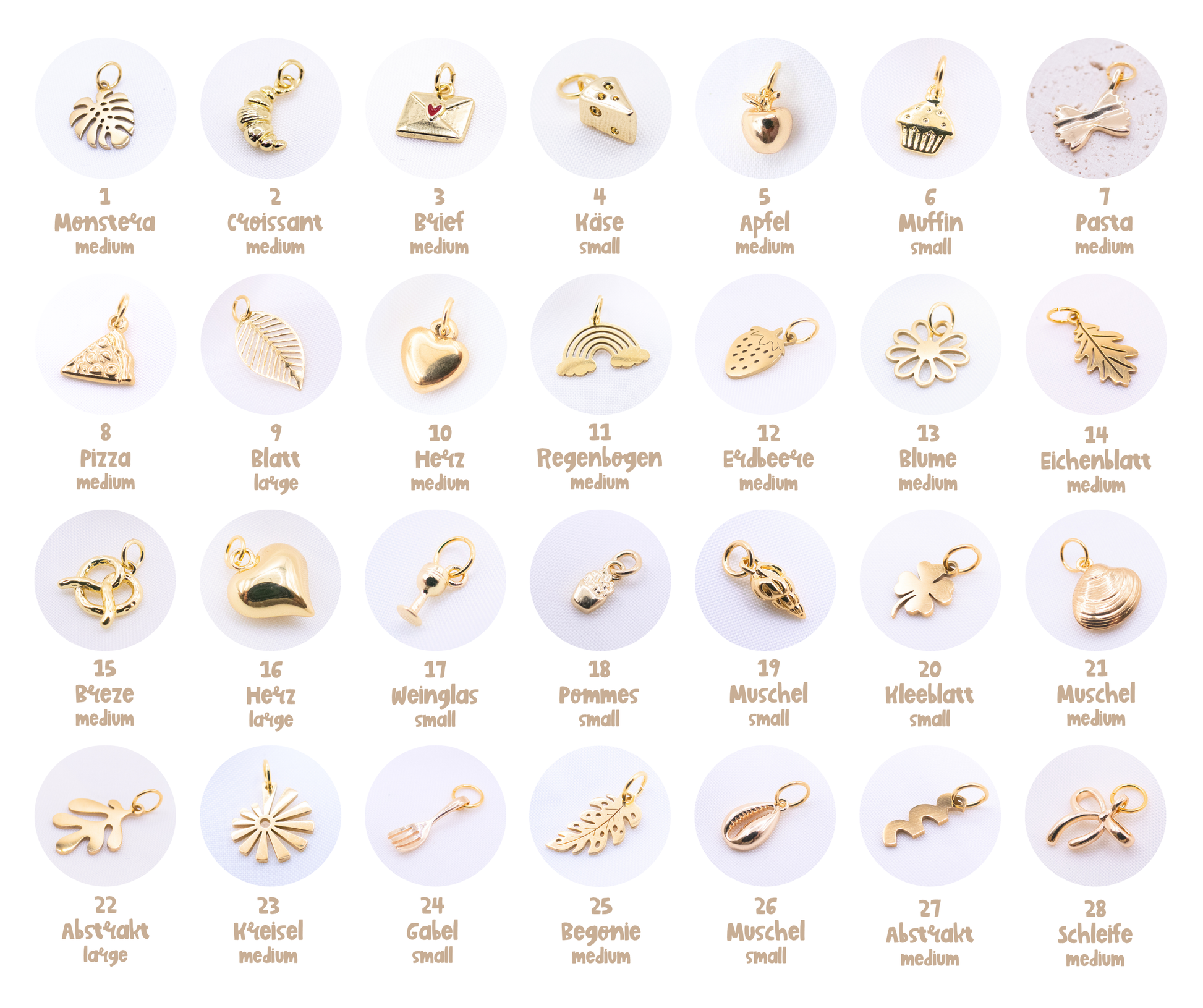Hier kannst du dir deine Halskette nach Wunsch zusammenstellen. Suche dir einfach die Charms aus, die dir gefallen.