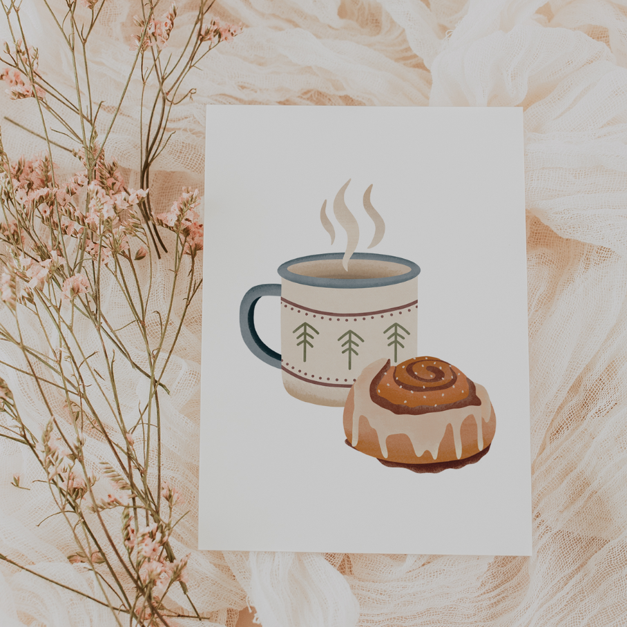 Postkarte Campingtasse & Zimtschnecke Norwegen Grußkarte Frühstück - Camping Karte Schweden Kanelbulle