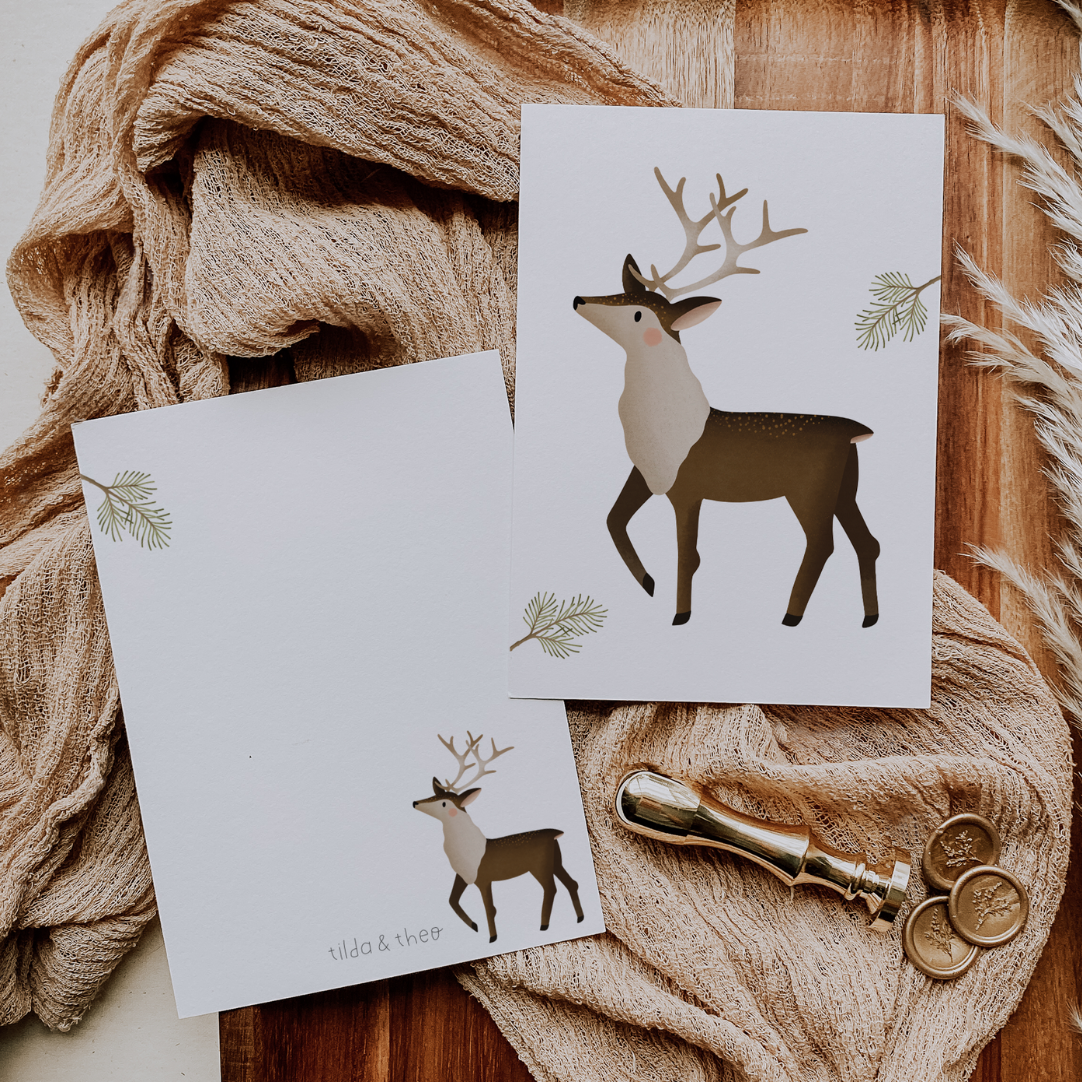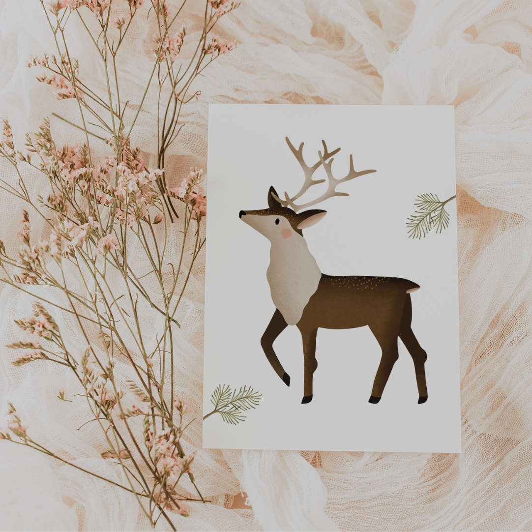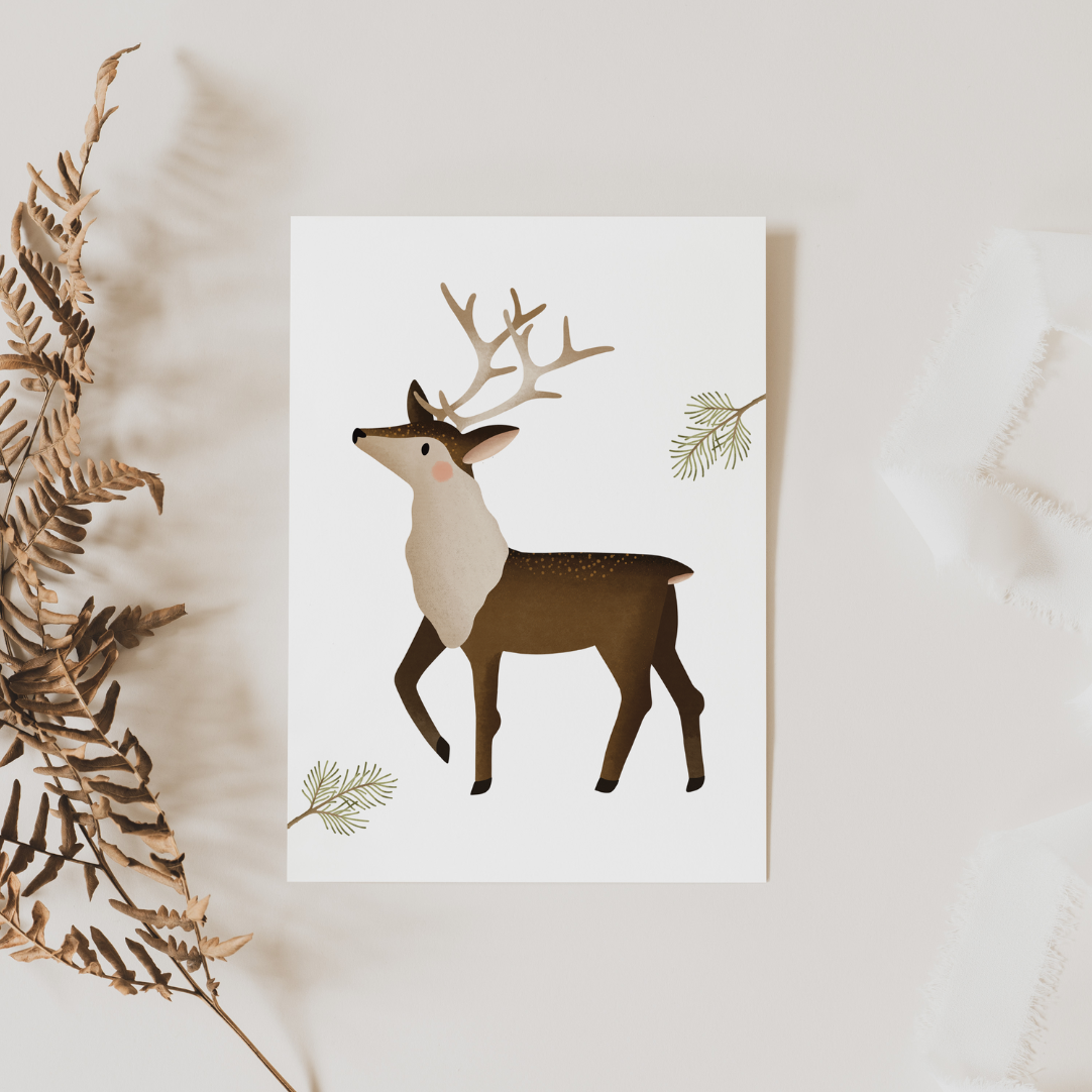 Postkarte Rentier Norwegen Skandinavisch - Weihnachten Hirsch Wald