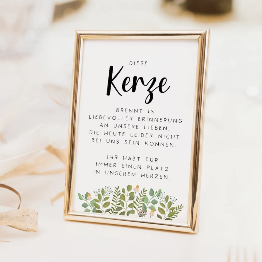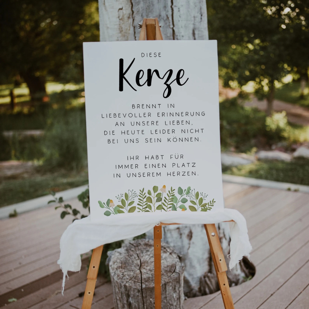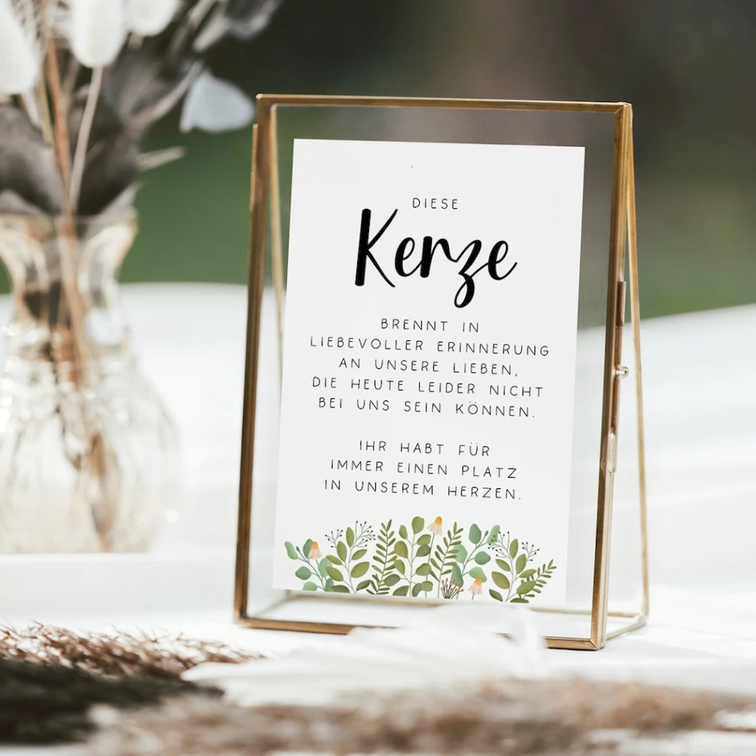 Schild Hochzeit Kerze Andenken Eukalyptus - Hochzeitsdeko Schilder Gedenken Verwandte